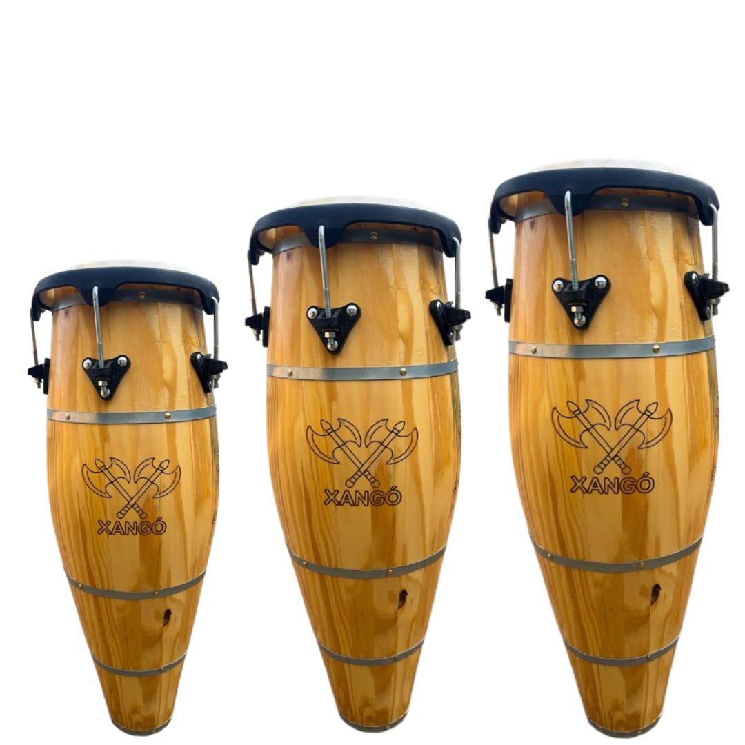 Cada atabaque é artesanalmente fabricado com ripas de pinus ajustadas e coladas manualmente, garantindo acabamento impecável, durabilidade superior e timbre autêntico.